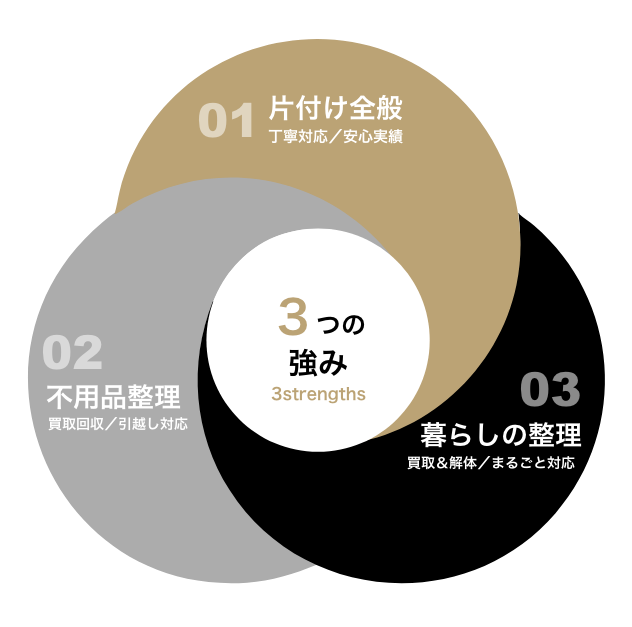 不用品の買取や回収、さらには建物の解体・撤去作業まで、